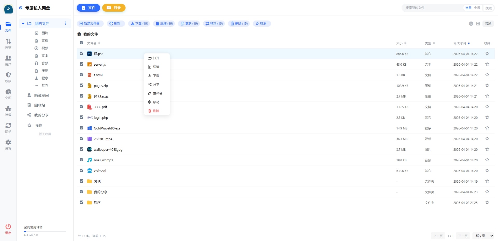 - 批量操作 :支持多选文件进行批量操作