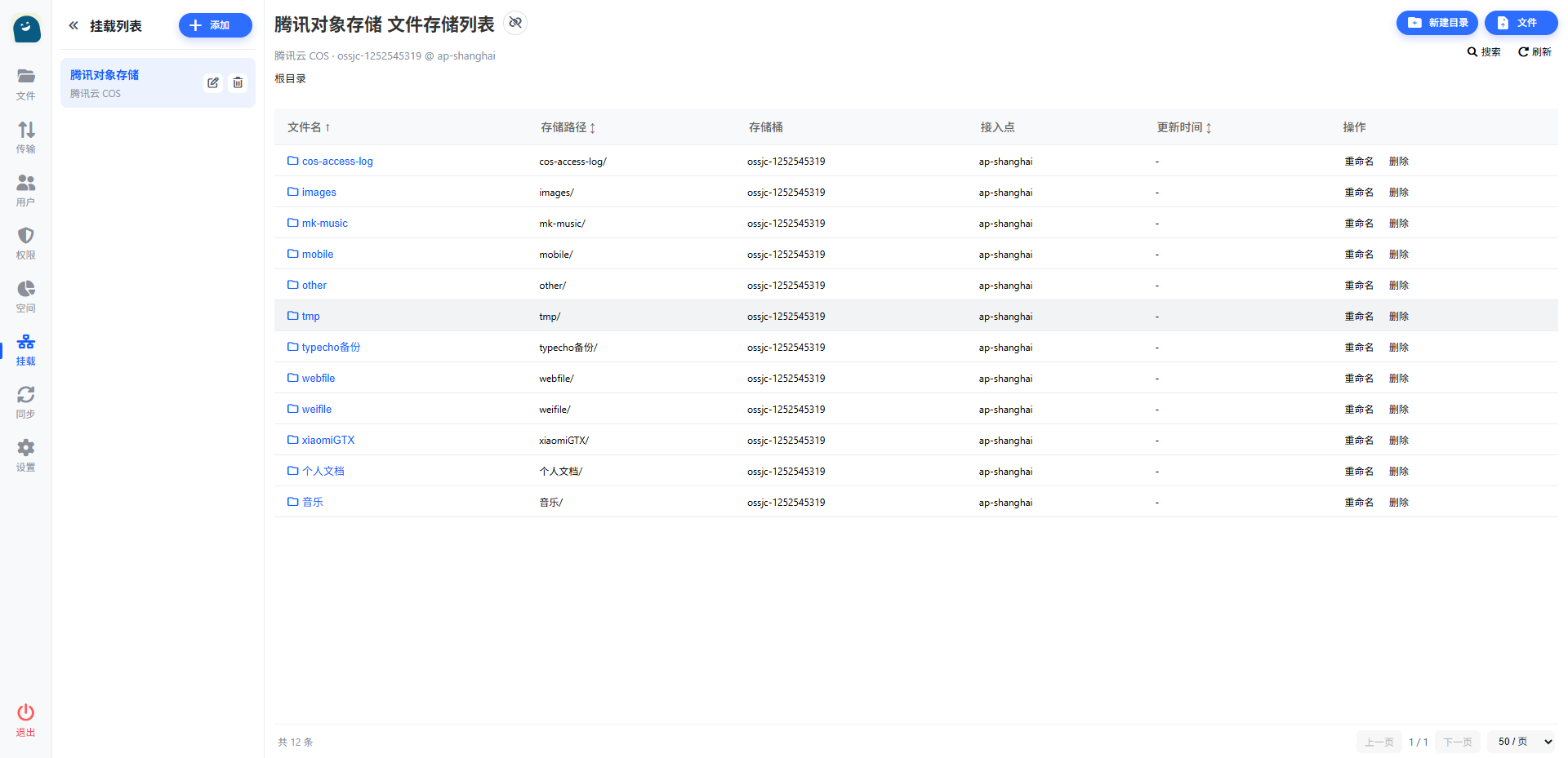 - 目录管理 :支持创建、删除、重命名云端目录