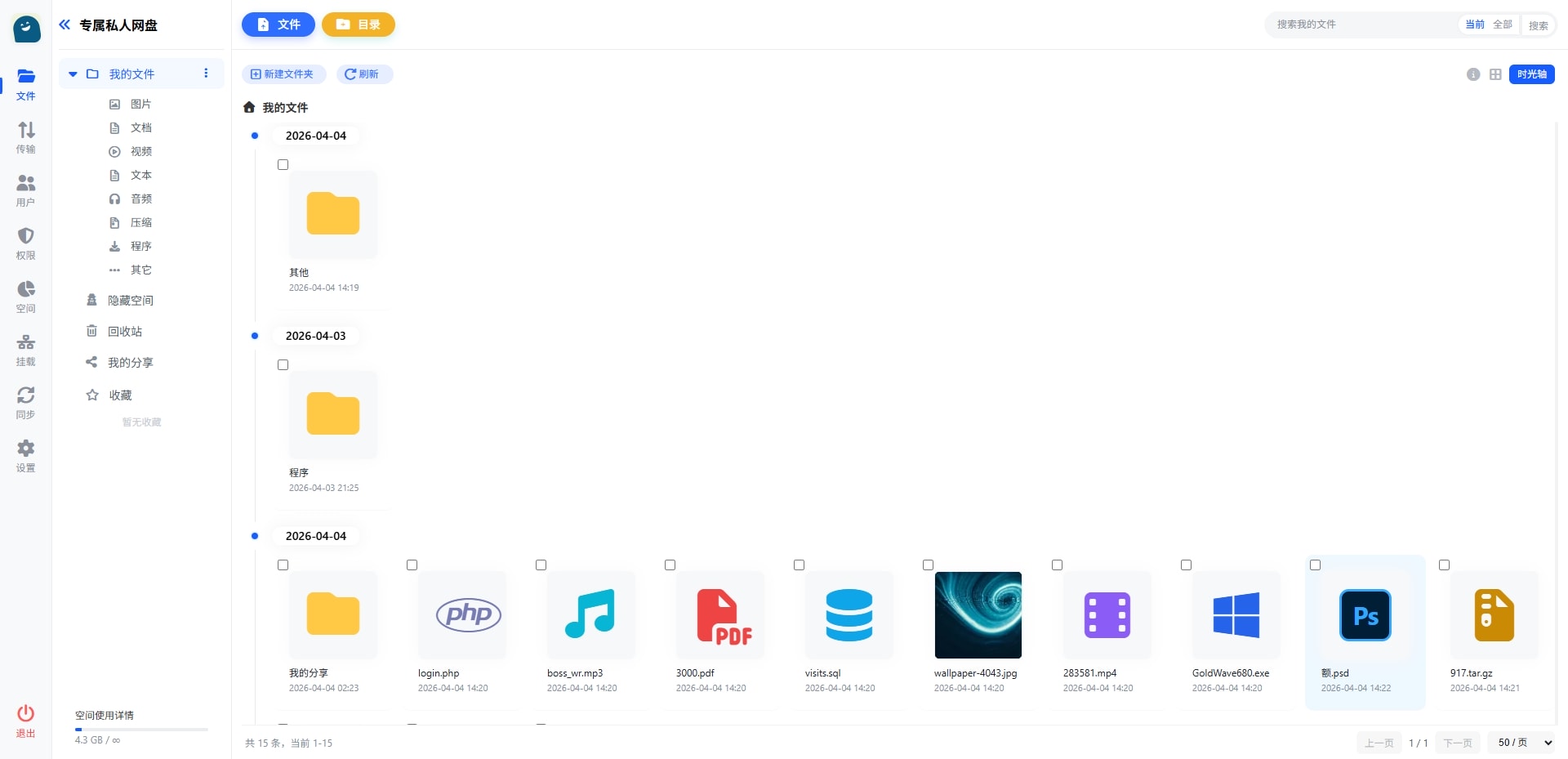 - 文件预览 :支持图片缩略图、音视频播放、文档查看、压缩包查看