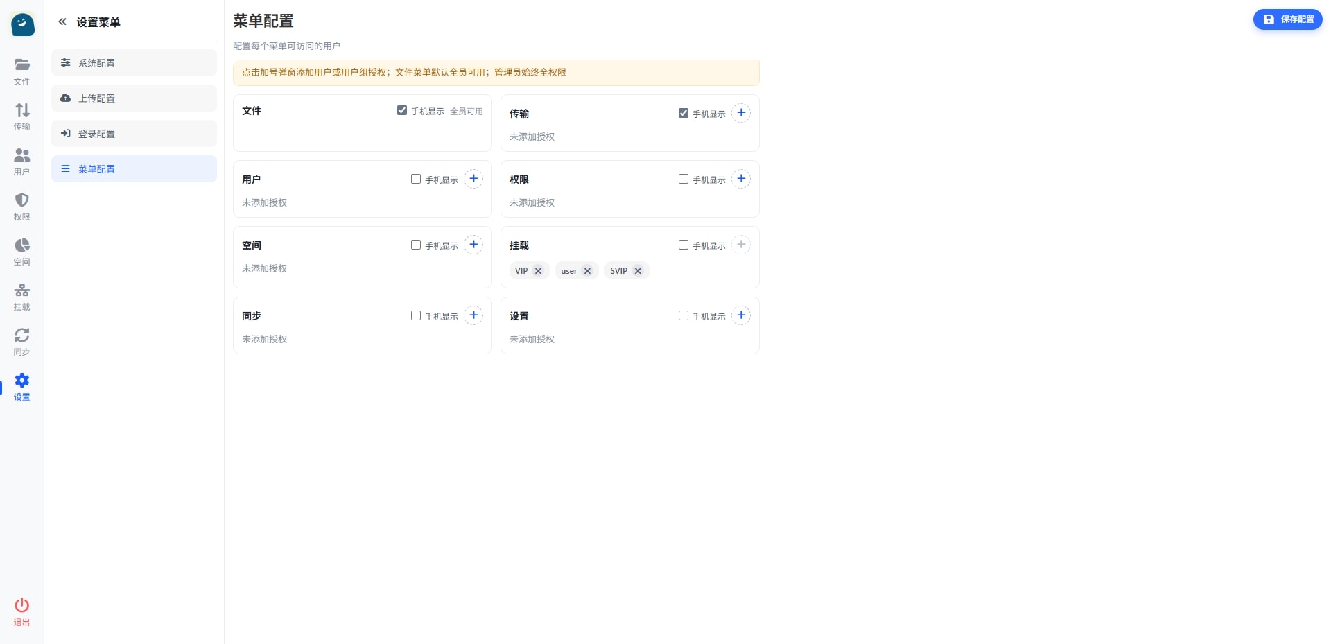 - 权限控制 :基于用户角色的挂载访问权限