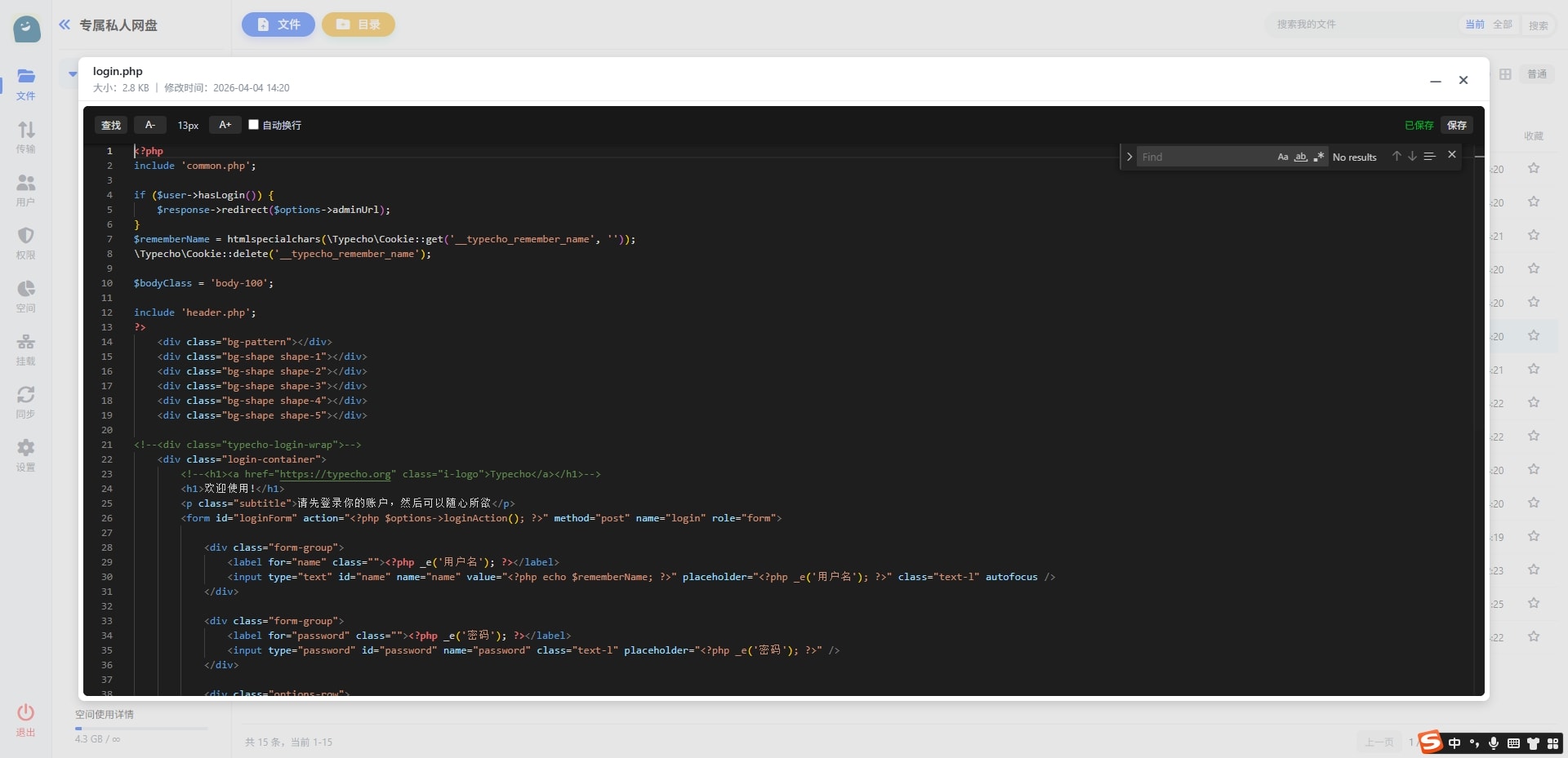 - 文件搜索 :支持文件名和内容搜索