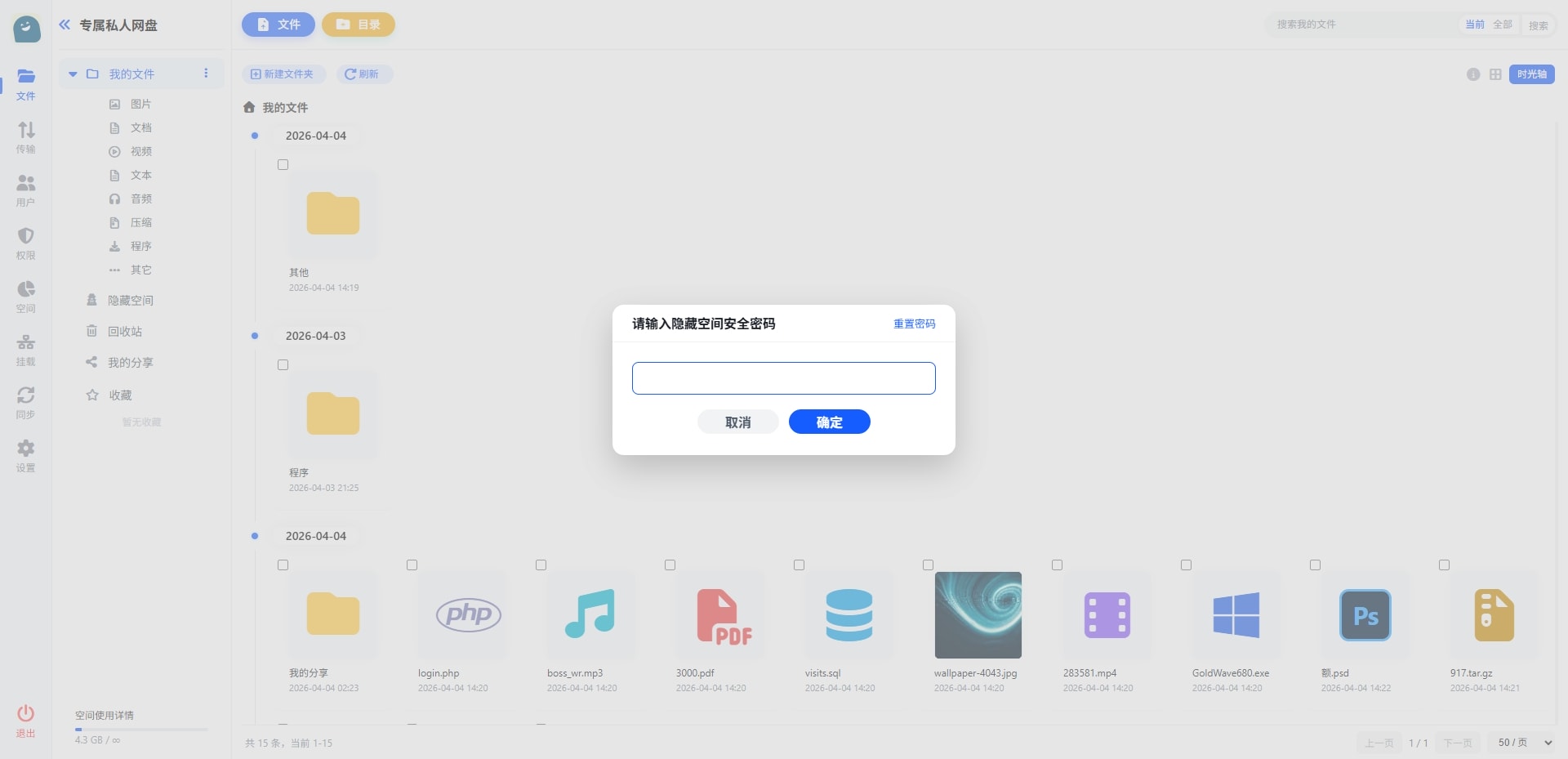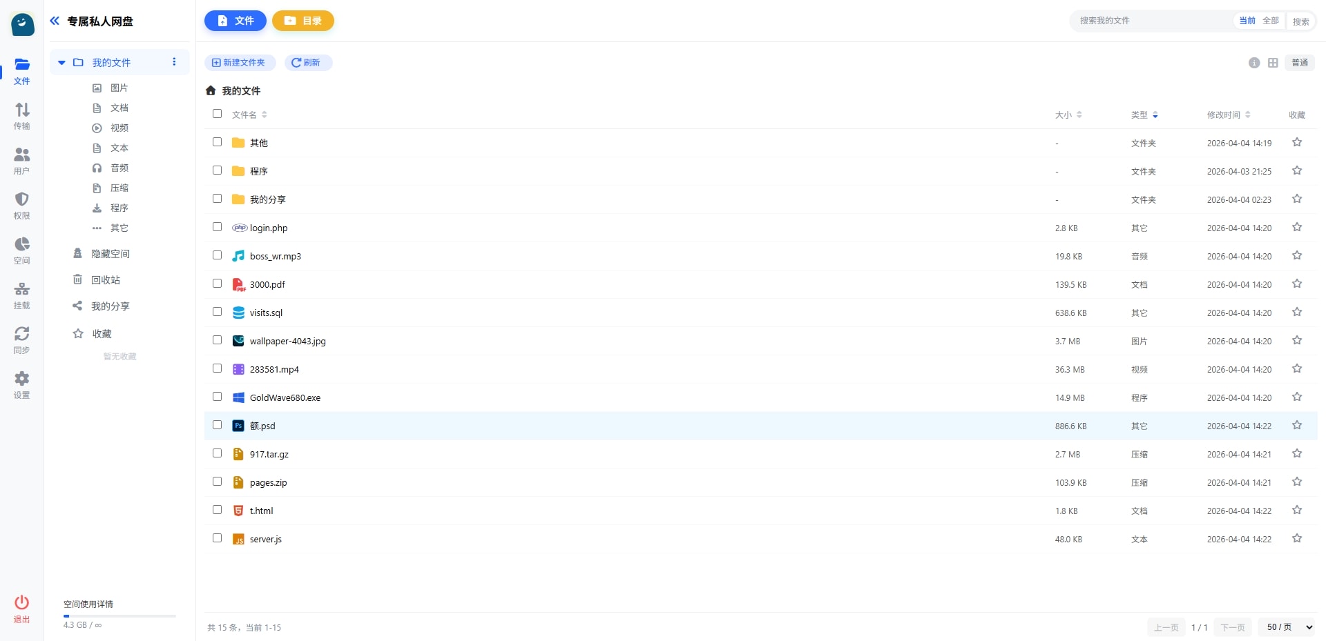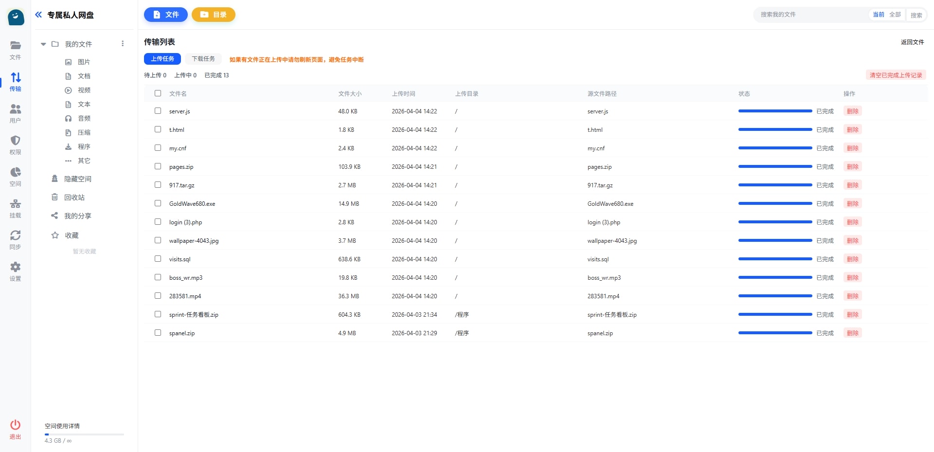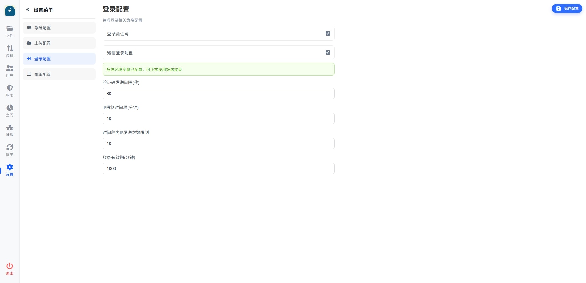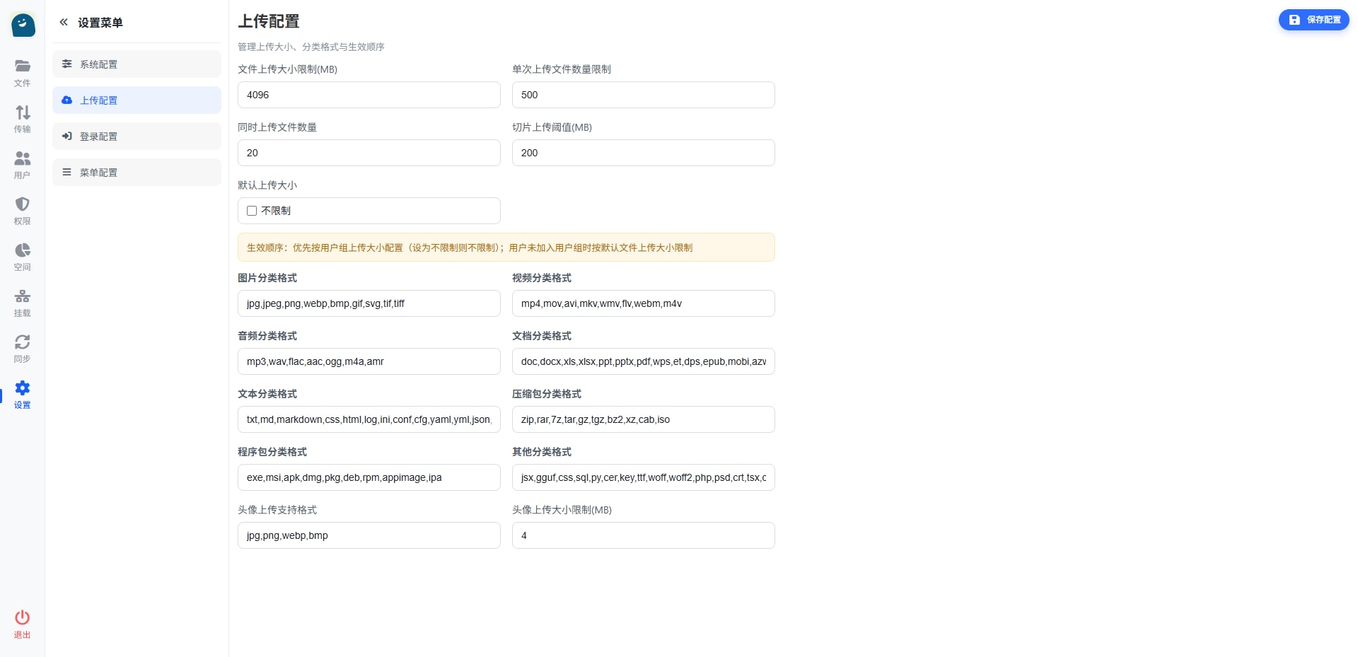 - 文件大小限制 :可设置最大上传文件大小(默认10GB)
