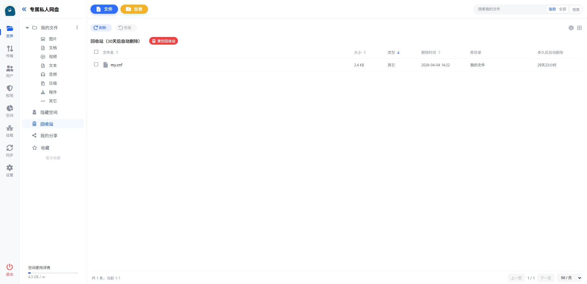 - 回收站 :删除文件进入回收站,30天保留期